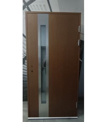 Drzwi Wiśniowski Creo wzór 317 z doświetlem bocznym wymiar 1430/2130, kolor HI Quartz Grey, wstawka Winchester, pochwyt podłużny 1600, samozamykacz ukryty, klawiatura kodowa numeryczna. Towar poekspozycyjny Symbol E125069000225
