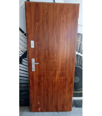 Drzwi Wikęd Premium 80N P zewnętrzne do domów i mieszkań. Kolor złoty dąb, wymiar zewnętrzny 90/207. ościeżnica stalowa kątowa 9 cm, klamka , kpl. wkładek
